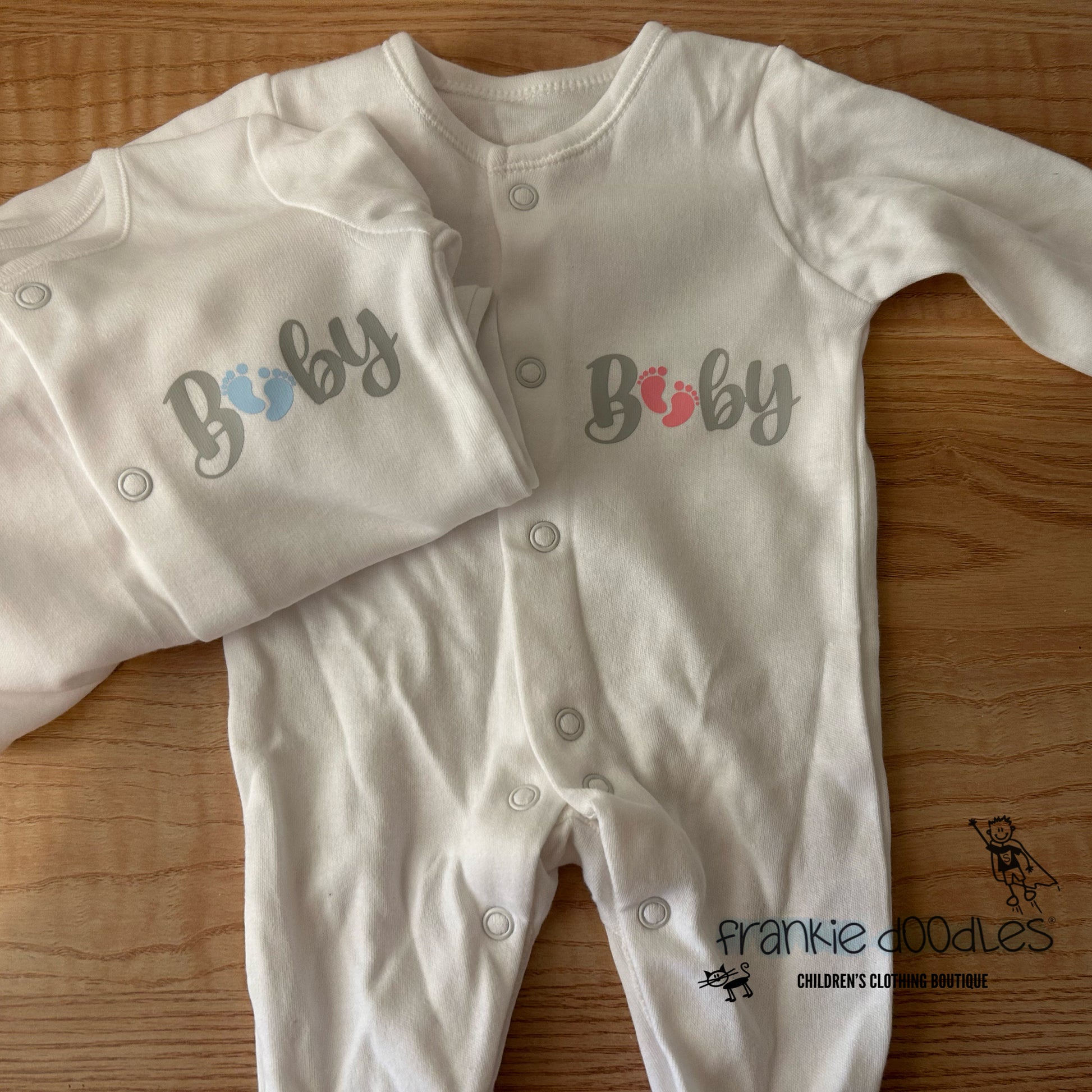 Wrap your little one in comfort and style with our custom-printed cotton baby grow, specially designed for small or premature babies.