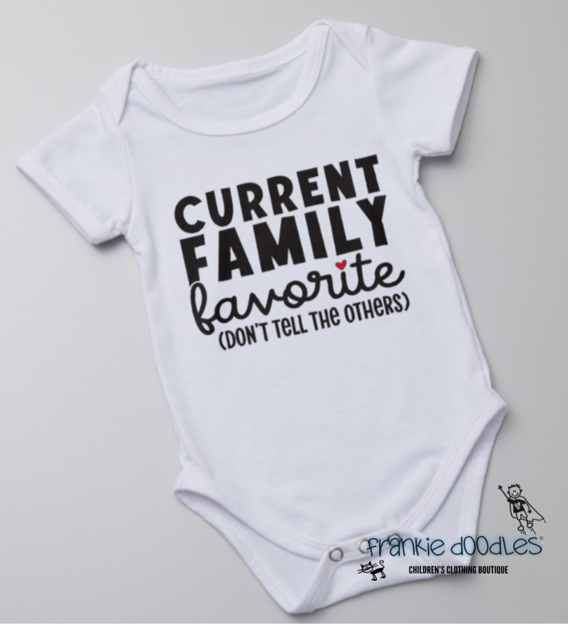 Let’s be real—every family has a current favorite, and now your little one can wear the title proudly! This adorable, fun, and cheeky onesie is perfect for the baby who’s getting all the extra cuddles (and secretly ruling the house).